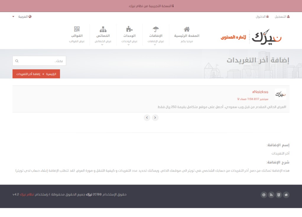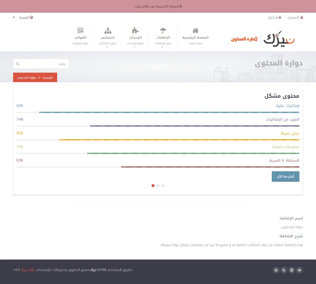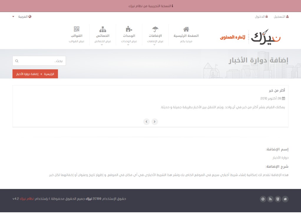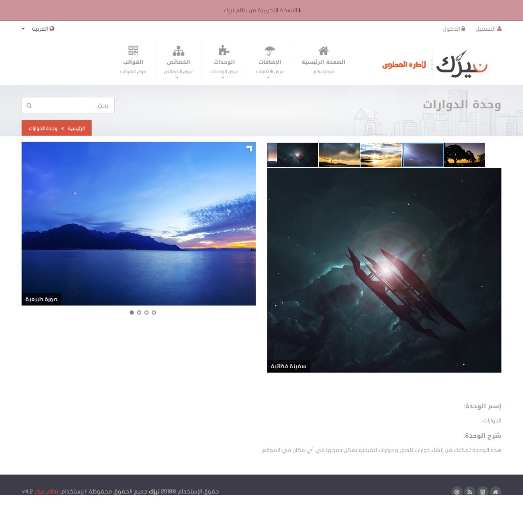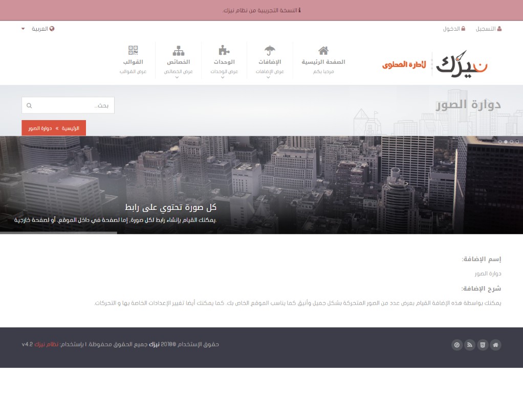 بعض الوحدات تمكنك من إنشاء إضافات كدوارات الصور وغيرها